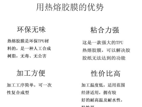 具粘著力強,塑化時間快,可性強力粘接;操作方便,可代替人工刷膠水,噴膠,適于批量生產;環保,抗老化,耐侯性佳。